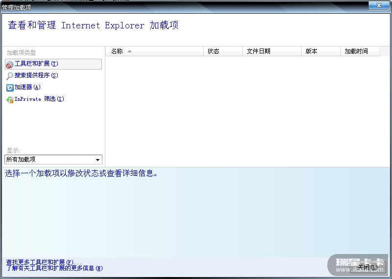 打开IE的“管理加载项”,是空的。重装了也没有解决。加速器也显示不出来。