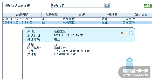 我的瑞星日志里也有电脑硬盘C、D、E、F和H(可移动磁盘)阻止访问文件AUTORUN.INF的记录,可是显示受保护的操作系统文件后却没有AUTORUN.INF这个文件,这是为什么呢?此文件是正常文件吗,为什么所有盘都没有这个文件却有阻止访问文件的日志记录呢?(我没有双击盘符同样有日志记录):kaka2: