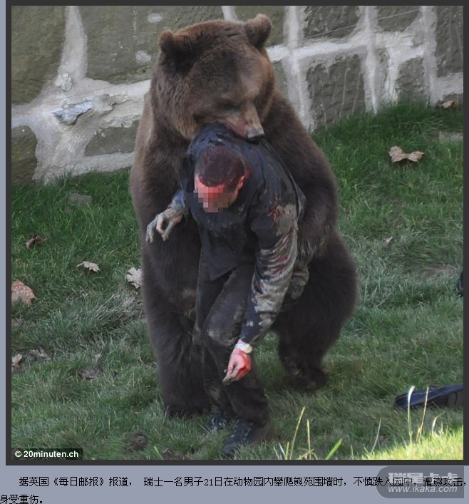 要不是管理人员有枪的话这个人就被熊活活的咬死了:kaka3: