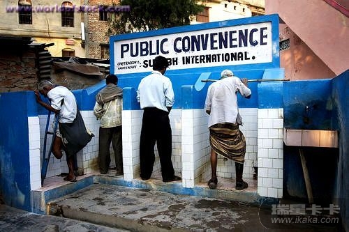 印度的大部分城镇,在靠墙的地方贴几块瓷砖,挖几个坑,就成了专供男人使用的公共厕所。而在广大农村,连这样的简陋厕所也看不到。根据联合国估计,印度有6亿人,或55%的人在室外“方便”。