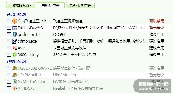 我想知道在哪可以完整删除,不在出现。以下图三瑞星启动项的名称