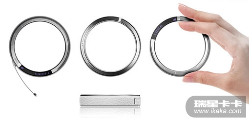 由Jung Dae Hoon设计的一款前卫的手镯式概念手机Dial Phone,该产品可以被认为是时尚的产品,设计师将手机设计成环形,可以像手镯一样方便携带,真是一个不就错的创意。该手机的数字键通过手镯边缘透射出来,在手镯接口处有一个小型的LED显示屏,可以刚好显示下时间、信号强度或来电号码,并且还可以将时间透射到人的手上,以方便查看。