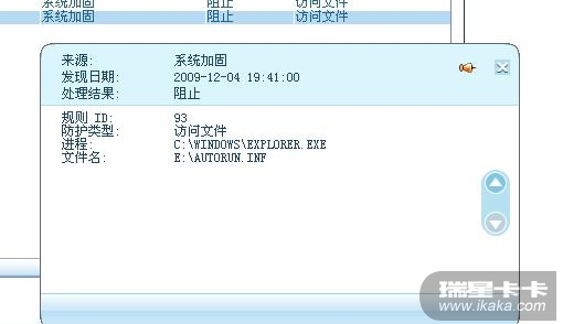 就算没有autorun.inf文件,系统自身的桌面进程也是会执行访问autorun.inf文件的命令的,2010瑞星的主动防御会常规性的阻止其访问autorun.inf文件的企图,并记录日志,哪怕没那autorun.inf文件,也一样阻止一次病记录日志。