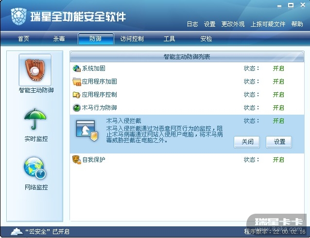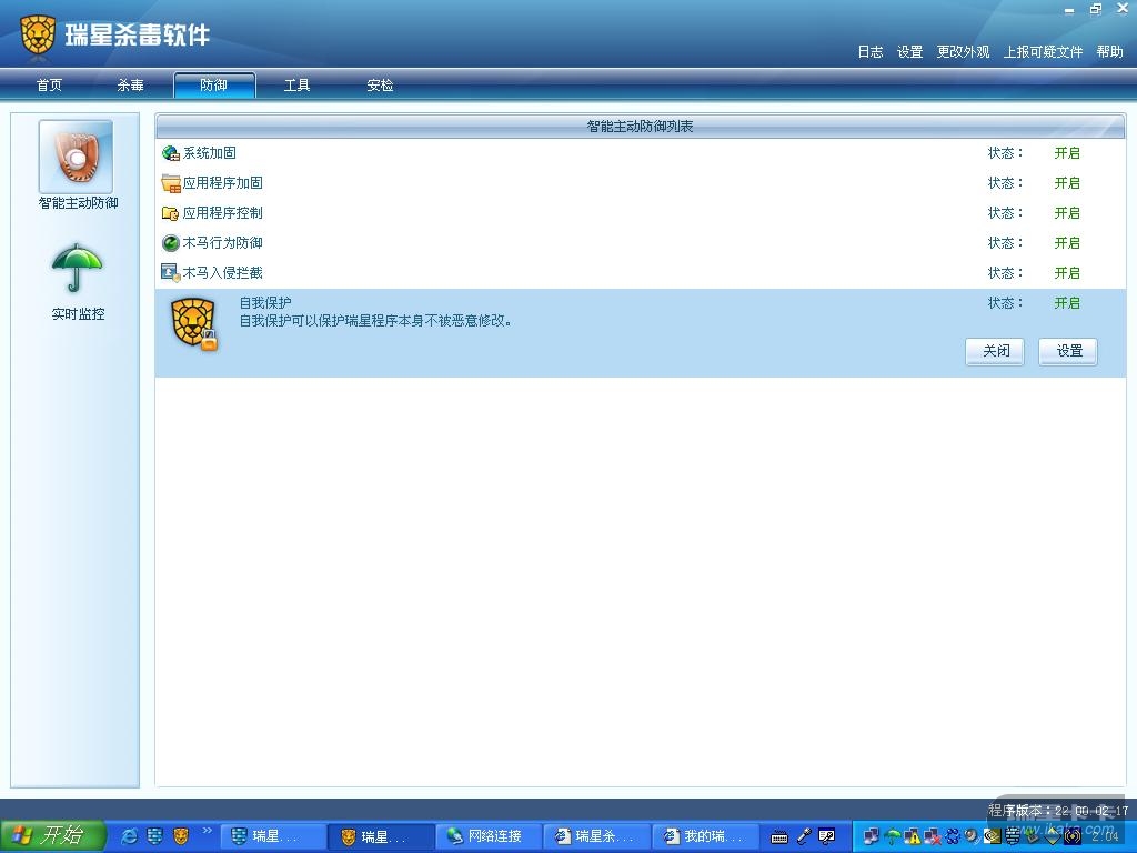 你的截图里有一项是我的杀毒软件所没有的——网络监控。。