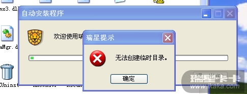 开始-运行-%temp%-确认-清空该目录下允许删除得所有文件,然后再安装卡卡