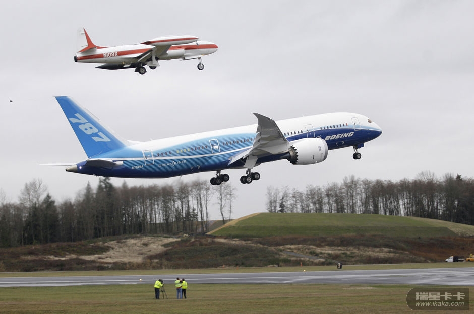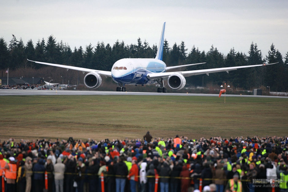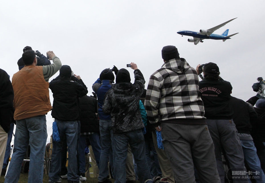 当地时间12月15日上午,华盛顿州埃佛瑞特潘恩机场,美国波音公司最新梦幻客机波音787升空试飞。当日有两万五千多人忍受寒冷观看了试飞过程。据悉,波音787合同储备订单总价值达到1400多亿美元,中国订了57架。