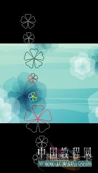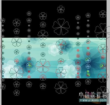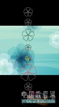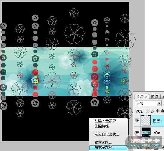 4、用"自定形状工具"在图中绘制好排成一条队的花瓣路径