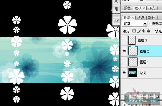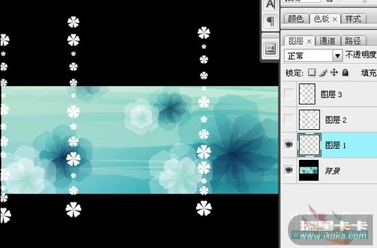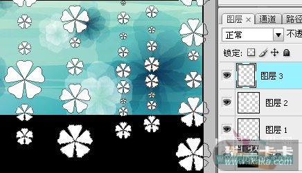 7、选择另外不同的几条相隔花瓣队列,重复第6步,然后我们就得到3个不同队列的花瓣图层,分别在图层1、图层2、图层3