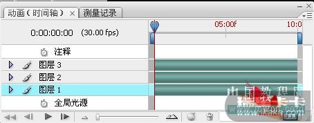 在第三个帧中,用"移动工具"分别把图层1、图层2、图层3向下移动60像素、40像素、80像素