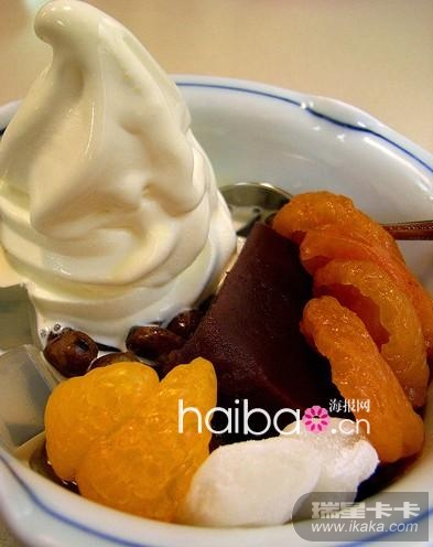 Anmitsu :传统的冰淇淋,里面有年糕、干果、豆子、果冻等