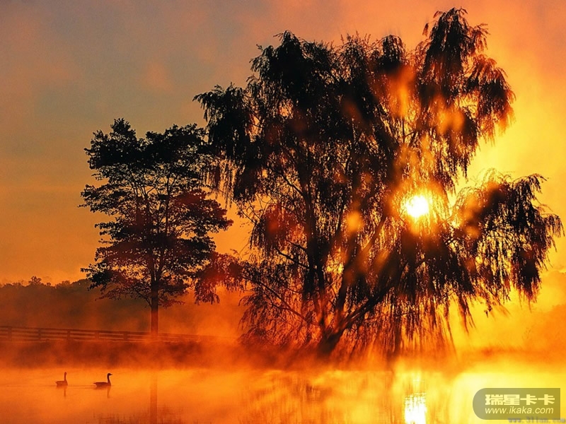 霞是由于日出和日落前后,阳光通过厚厚的大气层,被大量的空气分子