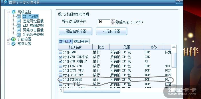 把防火墙的安全级别调到中,然后勾选如图的IP规则