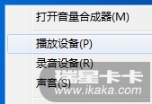 1.右键任务栏的喇叭图标,选播放设备