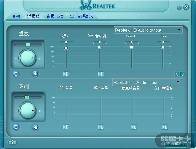 中午研究了一下,原来是要把“禁用前面板插孔检测”前面的勾打上。这下好用了,但是1楼那个图中下方的选项还是不可调的状态。