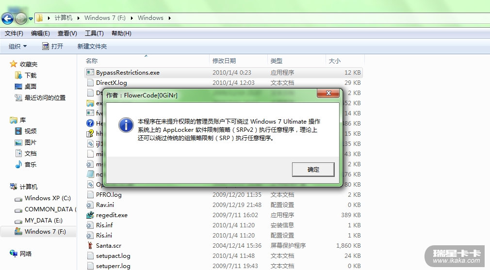 是“绕过软件限制策略执行任意程序”,而不是“不受软件限制策略影响而运行”。若真是那样也不会公布出来了,呵呵。