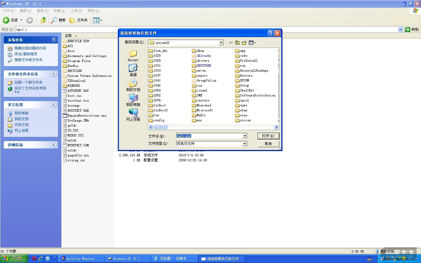 前两个操作应该是“打开文件”对话框自动调用的,后面一个是创建进程的操作。