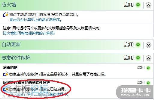 先谢谢各位的热心。但不是我要的啊我想知道的是:为何瑞星在反间谍这个认证上没有图标?其他杀毒的在反病毒和反间谍这两个地方都有自己的图标的!另,windows defengder是微软的,但我不想用,只想让瑞星的也显示,可以么?