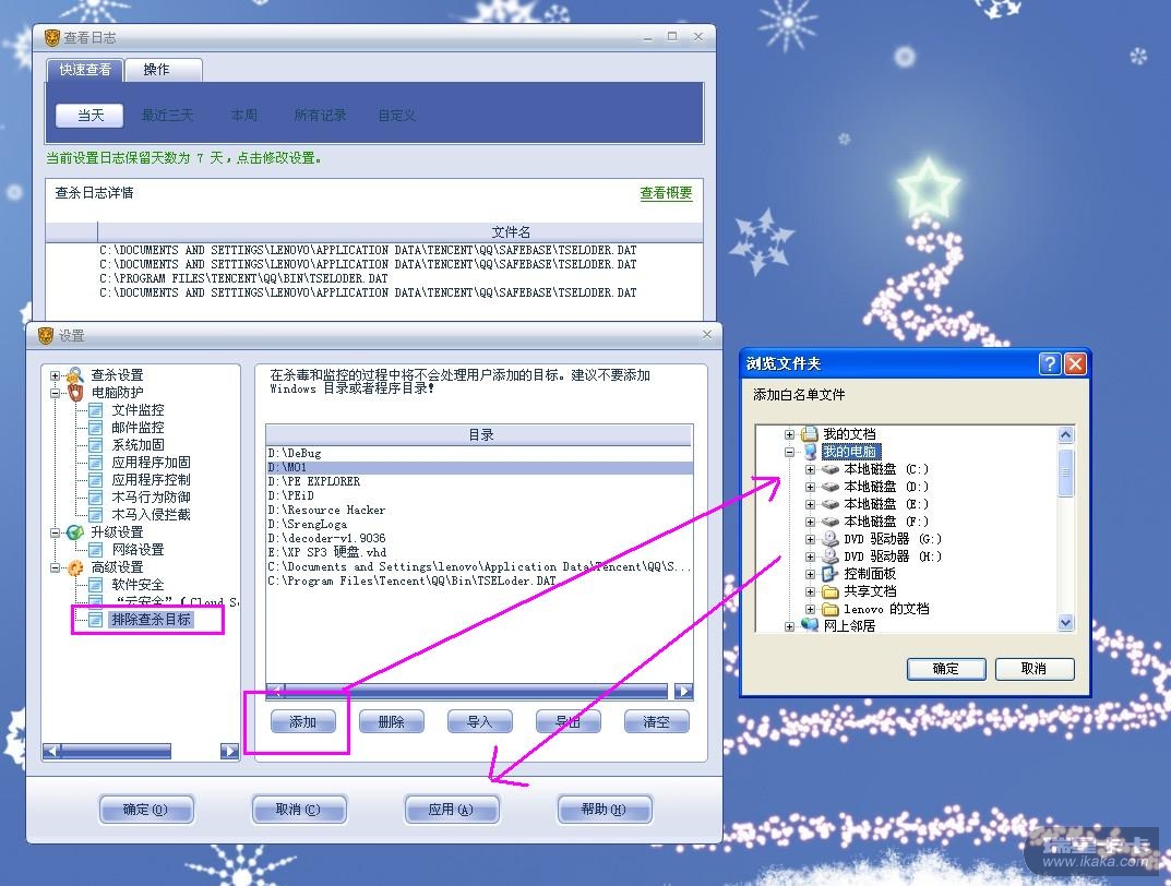 瑞星小伞---右键,详细设置--高级设置---排除查杀目标