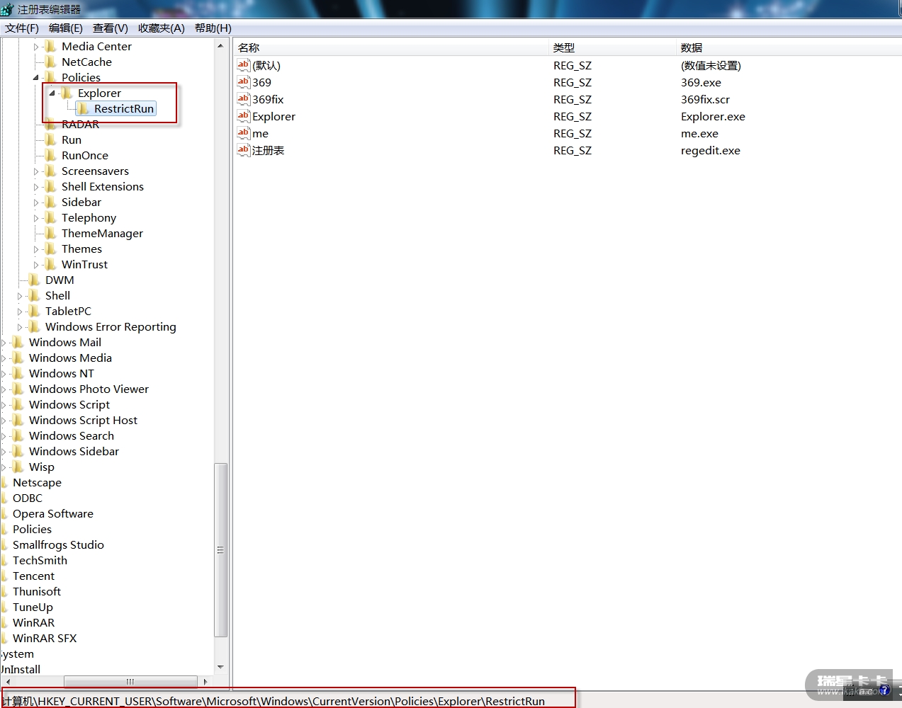 Shl.RegWrite ("HKCU\\Software\\Microsoft\\Windows\\CurrentVersion\\Policies\\Explorer\\RestrictRun","00000001","REG_DWORD");