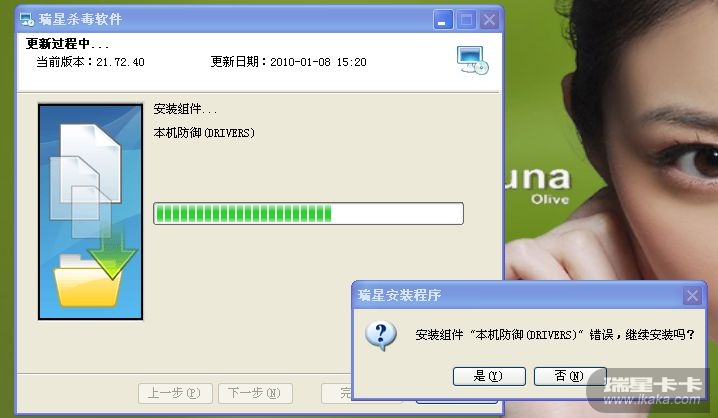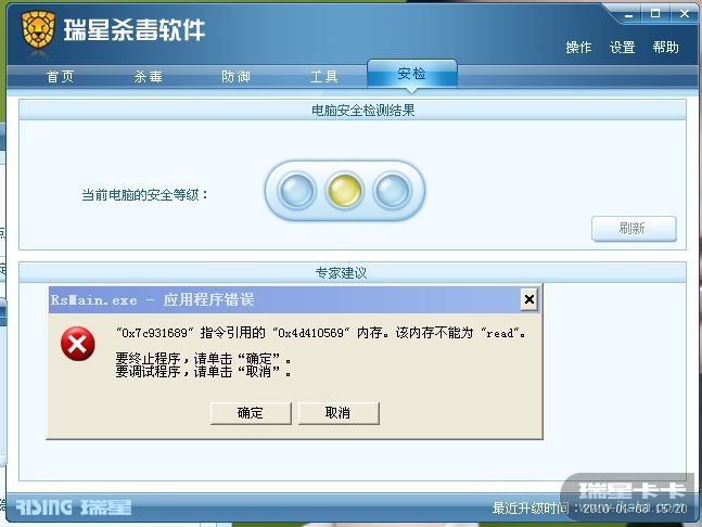 楼主用的什么系统,32位还是64位,瑞星软件是什么版本,个人版?企业版?下载最新的安装包再试试
