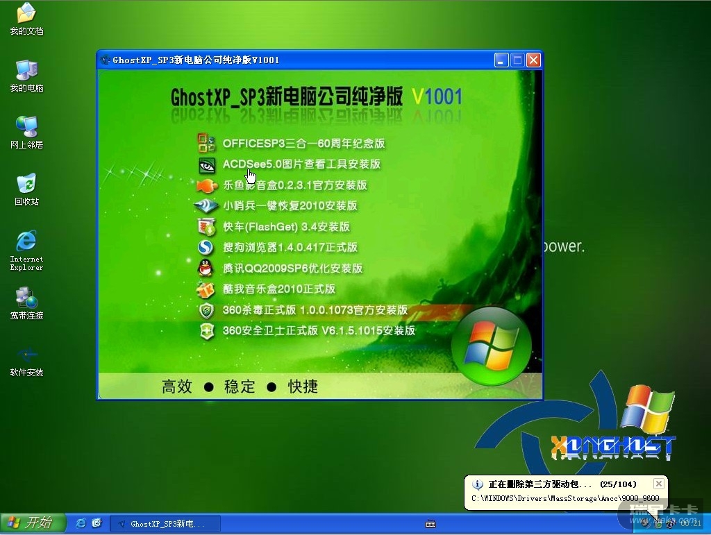 本系统采用 MSDN 发行的 Microsoft Windows XP Professional SP3 作母盘,可通过微软验证,可在线更新,请放心使用