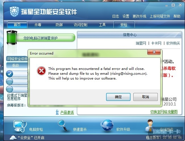 瑞星设置完成后点确定出现错误