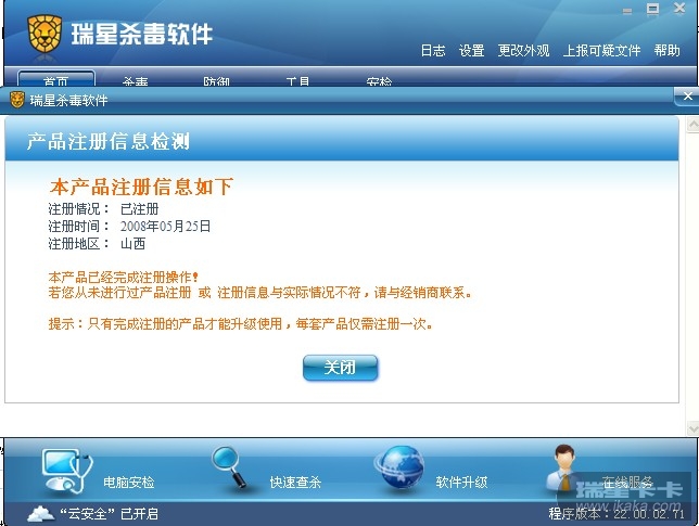 :kaka1: 我的是瑞星单机版 有杀软,防火墙。卡卡助手。。我想问下 我3个防护开启以后是否和360的网盾防护,网页防护。搜索保护引擎防护 冲突呢。。。。谢谢。。。两者可以同时开启么,还是只开瑞星就可以了。。。