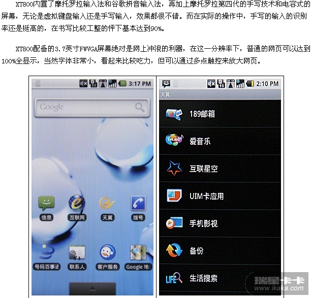 Android2.0+双模双待 摩托罗拉XT800评测