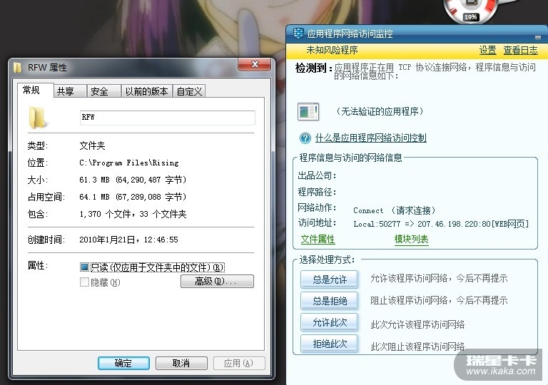 瑞星防火墙应用程序访问弹出框子,但是应用程序为空,没有任何显示,没有进程显示,直接上图,大家看看这是什么?