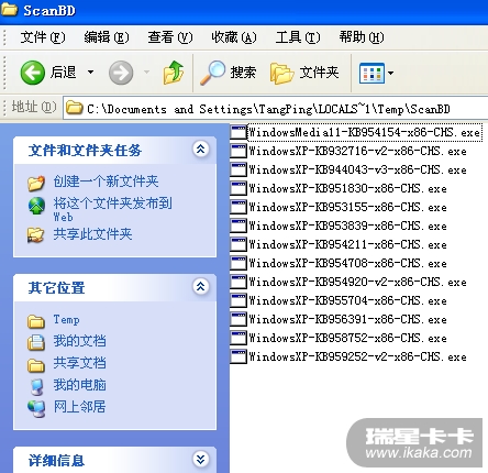 谢谢你的提醒!我在卡卡漏洞扫描的设置中查看了一下,发现补丁下载位置为:C:\Documents Settings\Tang\Local Setting\Temp\ScanBD,而我在Tang文件夹下并未发现有这样一个文件夹,于是我在Tang文件夹下手动添加了一个Local文件夹,并将补丁的下载位置改为了:C:\Documents Settings\Tang\Local \Temp\ScanBD