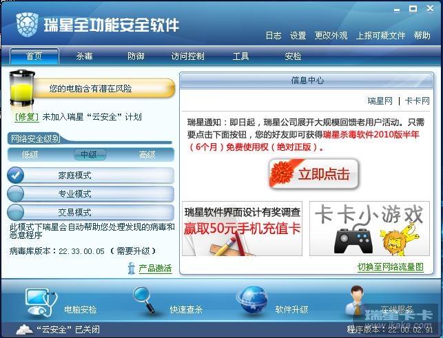 http://bbs.ikaka.com/showtopic-8586283-1.aspx,可是时间过去一年了,到现在依然没有解决!真不知道瑞星这些技术人员是干什么吃的!我买的正版瑞星,人家说瑞星技术差,我起初还不愿意相信,现在看来果真如此,既没有责任感,技术水平又低。硬盘的损害还是小事,最重要是的损害我们这些用户的心。所以,这瑞星到期以后,我将不会再用瑞星了,我将选择其它的杀毒软件。