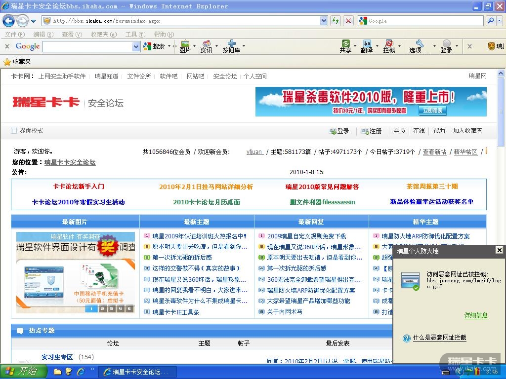您好,请您注意防火墙的提示,提示的恶意网站是:bbs.jianmeng.com,也就是说卡卡本身没有问题,但是卡卡网上有剑盟(就是bbs.jianmeng.com)的友情链接。好几天之前剑盟被挂马了,并收录到了瑞星防火墙的恶意网址库之中,所以当您登录卡卡论坛之后,防火墙发现了剑盟的链接,就会报警。