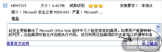 卡卡6的漏洞扫描查到漏洞补丁,点补丁详细说明后:如图