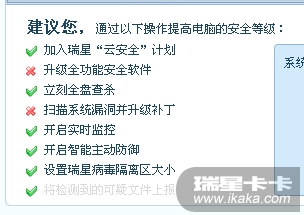 升级全功能安全软件是红色的X,应该就是没有升级吧,这是怎么回事 ,还有就是,瑞星老是弹出更新,而且是一闪就没了,弄的我一直弹出游戏,我用的是家庭的模式,安全级别是中级,哪位高手来帮我看下啊,这个很难