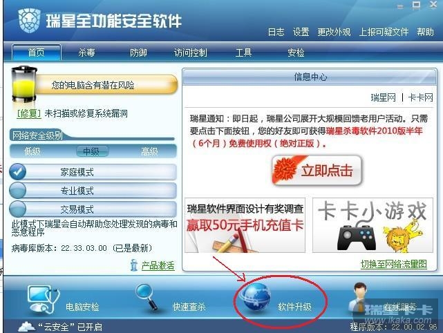 (弹出游戏)可以取消——瑞星默认[随时升级]