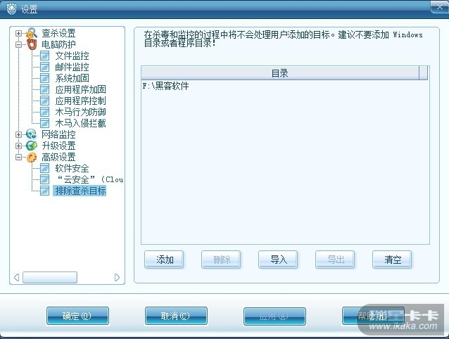 我做了个示范,添加的是F:/黑客软件/
