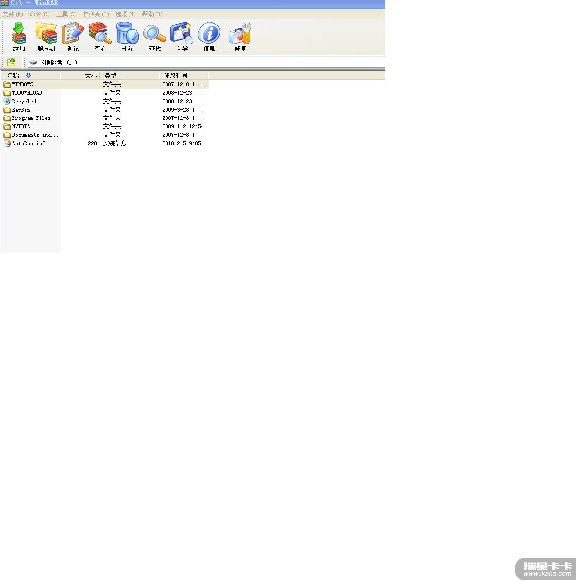用解压工具WinRAR打开U盘看根目录下不明文件: