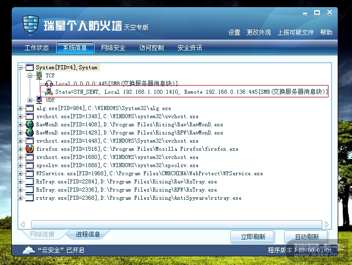 在防火墙中会发现这个变化,就是图中那个红框中的。smb 同步发送问题。