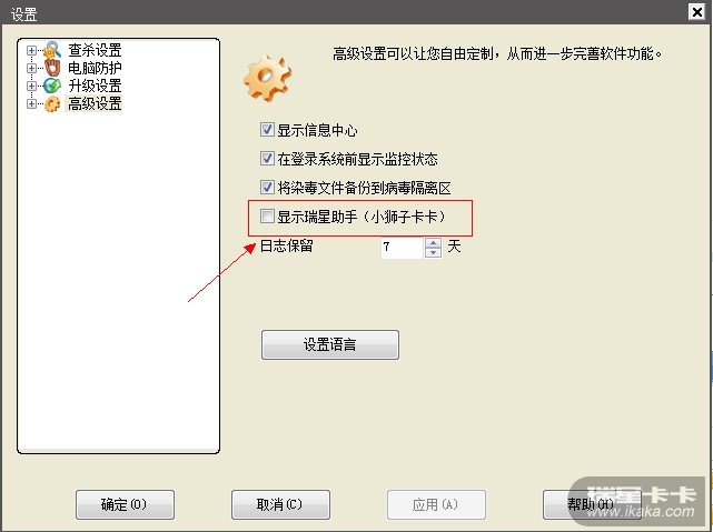 打开瑞星总是出现“瑞星小助手”的狮子动画,怎样才能不出现呢,在那设置,请指教。