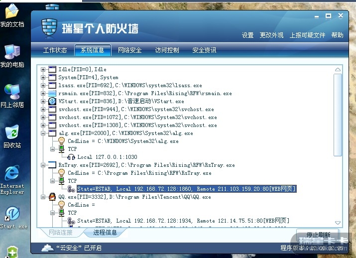 一般只要是开着瑞星杀毒软件是很难中木马的,而且很少的木马会采用1025这个端口,