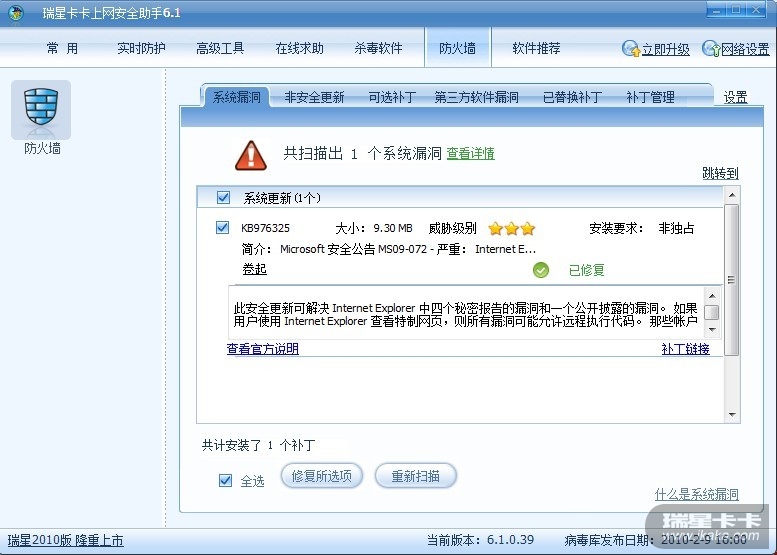 或者从网上下载这个补丁,安装一下(注意要和自己的IE版本配套)。