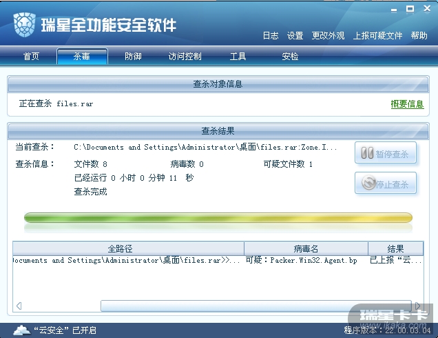 测试病毒包时要测试防御就要关闭监控只用防御,测试特征码时就要反之了。考验防御就是考验某软件研发人员的技术积累,写的规则了