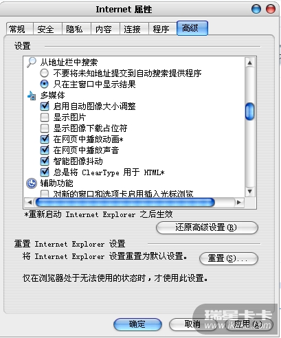 在看一下IE属性中多媒体那一栏中显示图片那一条是否点选,如下图: