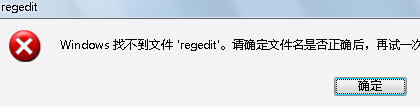 首先是打开注册表命令REGEDIT没有用了,在运行里输入后,提示WINDOWS找不到“REGEDIT”