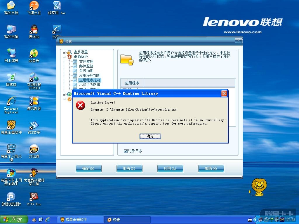 瑞星配置文件异常,建议楼主不保留配置文件卸载后重装一下。