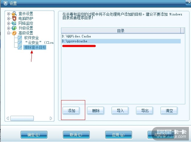 打开瑞星设置,高级设置,排除杀查目标,添加,将
