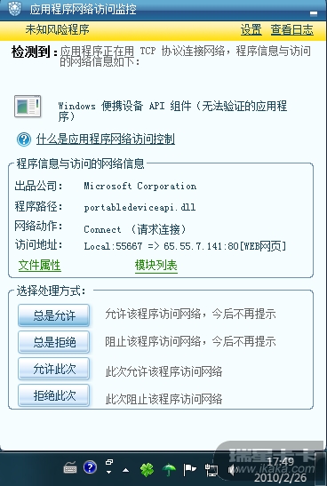 最近观察到两个dll(一个是portabledeviceapi.dll,另一个是aepdu.dll)访问网络会被RIS拦截,但是程序路径显示有问题(只显示dll的名字),如图