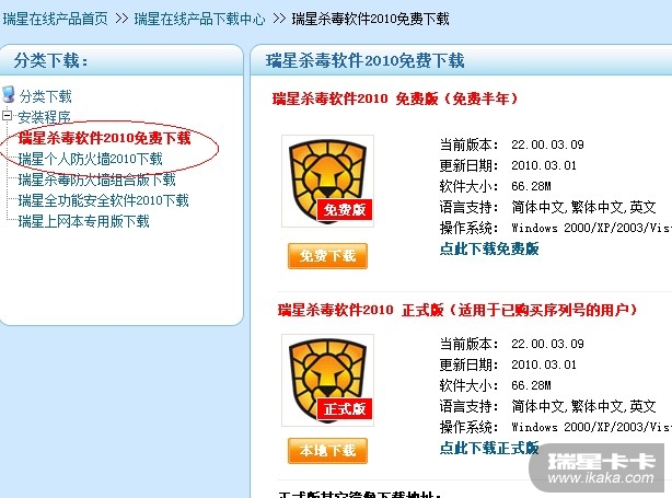 当然,您也可以卸载瑞星,http://shop.rising.com.cn/download/index.htm进入下载中心下载最新的瑞星杀毒软件安装包,瑞星防火墙安装包,并使用光盘上的序列号安装