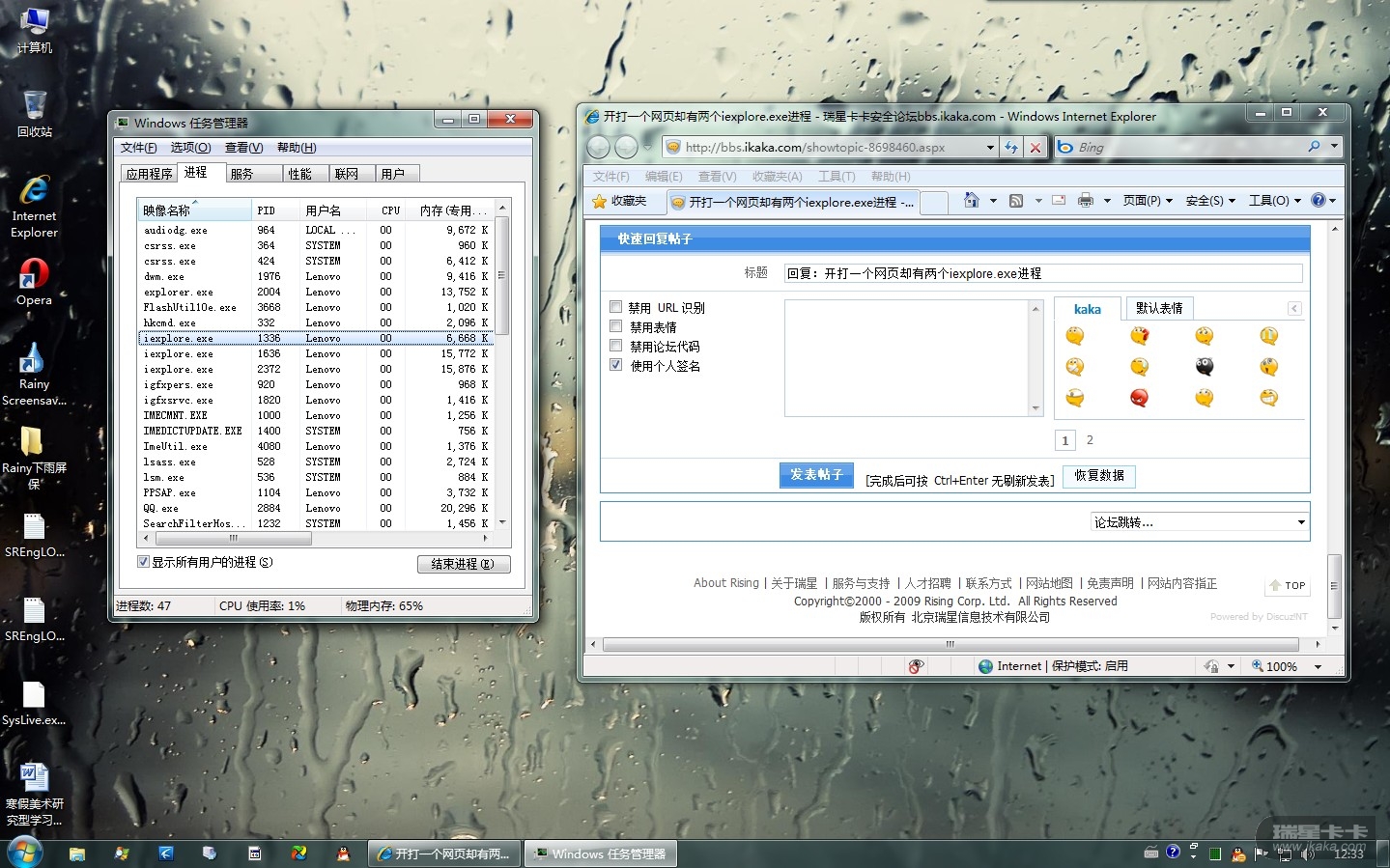 首页 » 技术交流区 » 反病毒/反流氓软件论坛 » 开打一个网页却有两个iexplore.exe进程