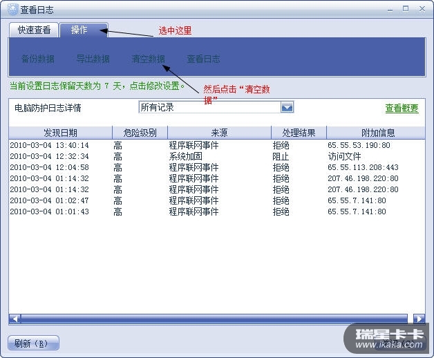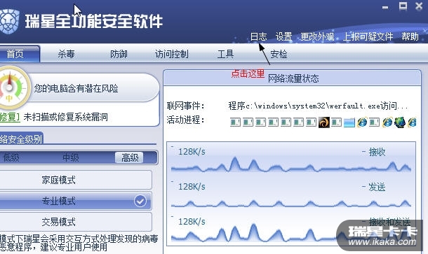 在瑞星面板上【设置】--【查杀设置】下的【空闲时段杀毒】进行关闭日志记录。